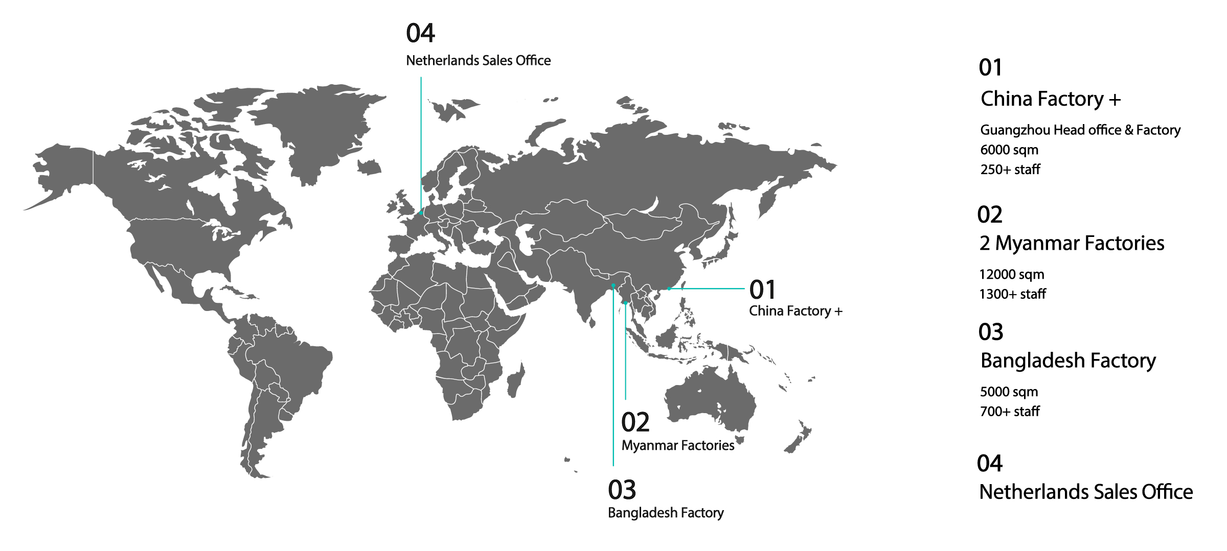 Connect with us — no middlemen, just pure, seamless communication from design to delivery. With our four dedicated factories, we commit to swift lead times without compromising on high standards.